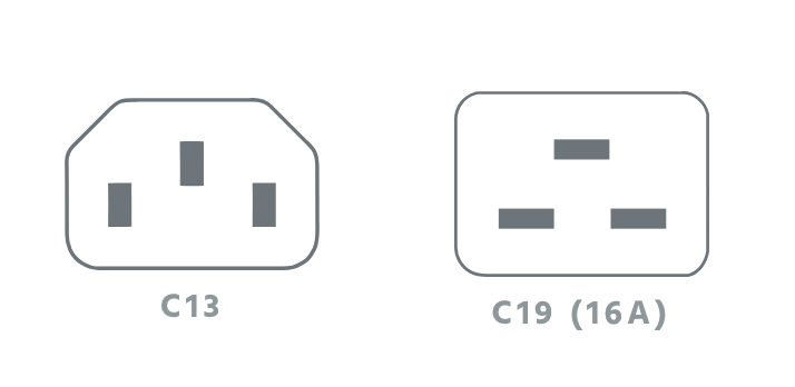 - IEC-Stecker Am Gerätende des Netzkabels stehen die IEC-Steckeroptionen C13 oder C19 (16 A) zur Verfügung.