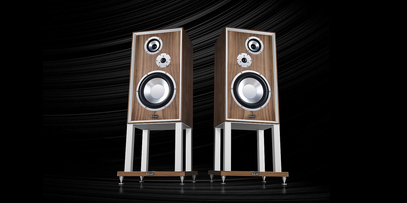Genau wie die Vollverstärkermodelle Leak Stereo 130 und 230 behalten auch die neuen Lautsprechermodelle Leak Sandwich 150 und 250 das schlichte, klassische Leak-Design bei. Das Gehäuse ist mit einem edlen Walnuss-Echtholzfurnier verkleidet und mit einem Aluminium-Einsatz verziert, der mit den gleichen vorbildlichen Standards wie die Lautsprecherabdeckungen und Konusmaterialien abgestimmt und verarbeitet ist.