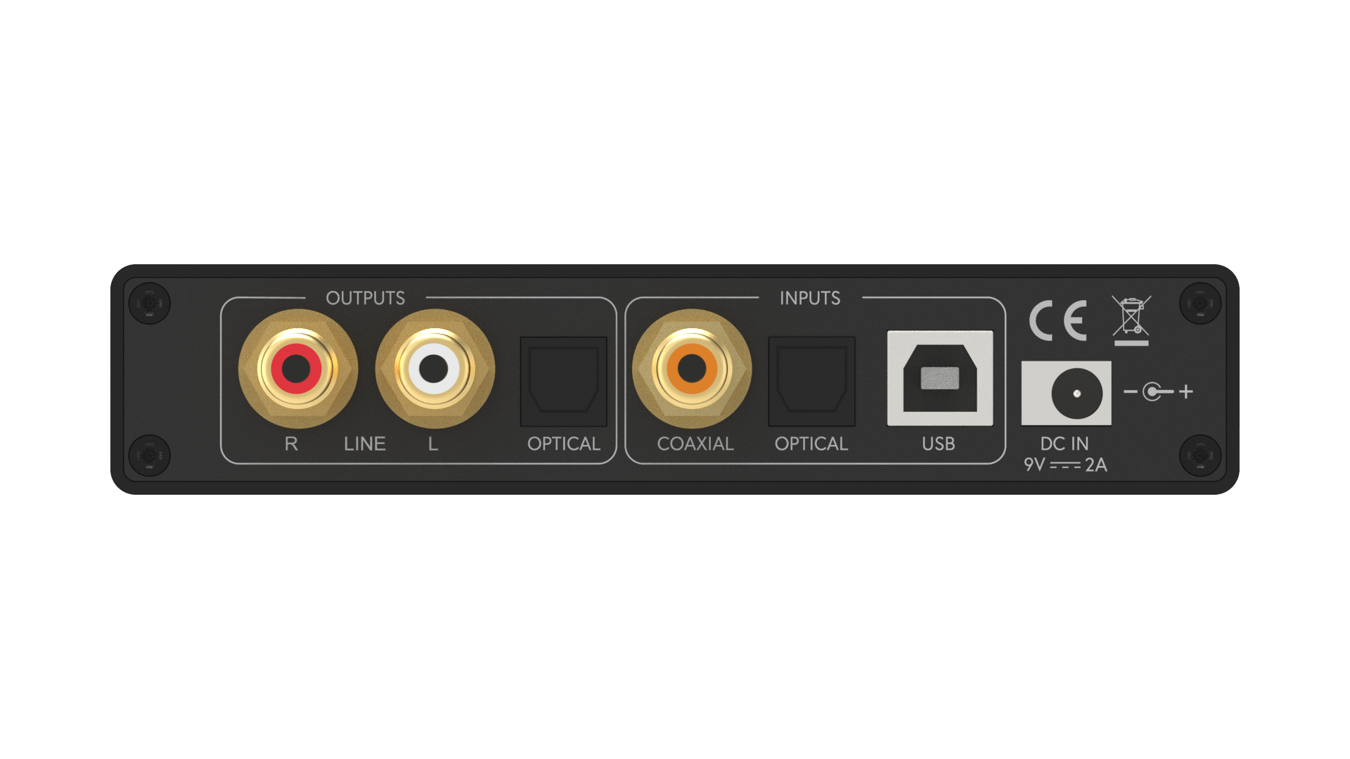 - Eingänge: USB, digitaler optischer und digitaler koaxialer Eingang mit vergoldeten High-End-RCA-Buchsen aus massivem Messing für beste Signalübertragung.